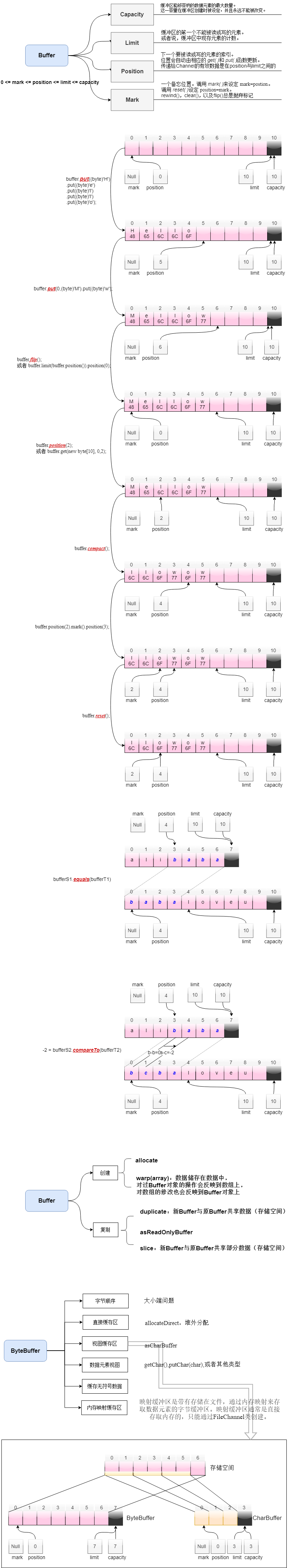 具体内容请看以下图片,图片原文件地址为Java-NIO Buffer.drawio